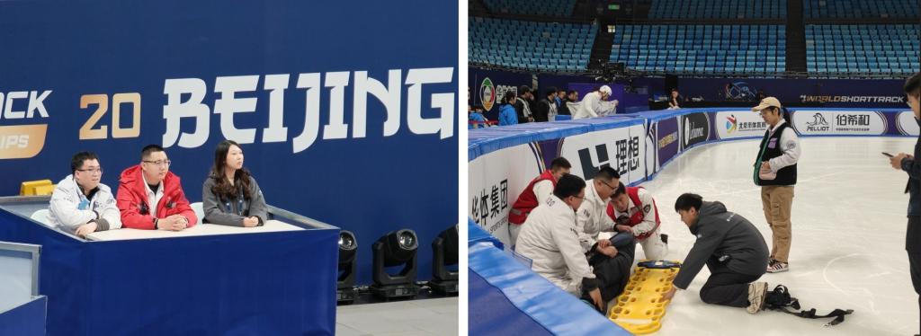 醫(yī)療臺(tái)上,志愿者輔助北京急救120等團(tuán)隊(duì),為運(yùn)動(dòng)員提供及時(shí)的傷情救助與緊急護(hù)理,高度投入、時(shí)刻待命。