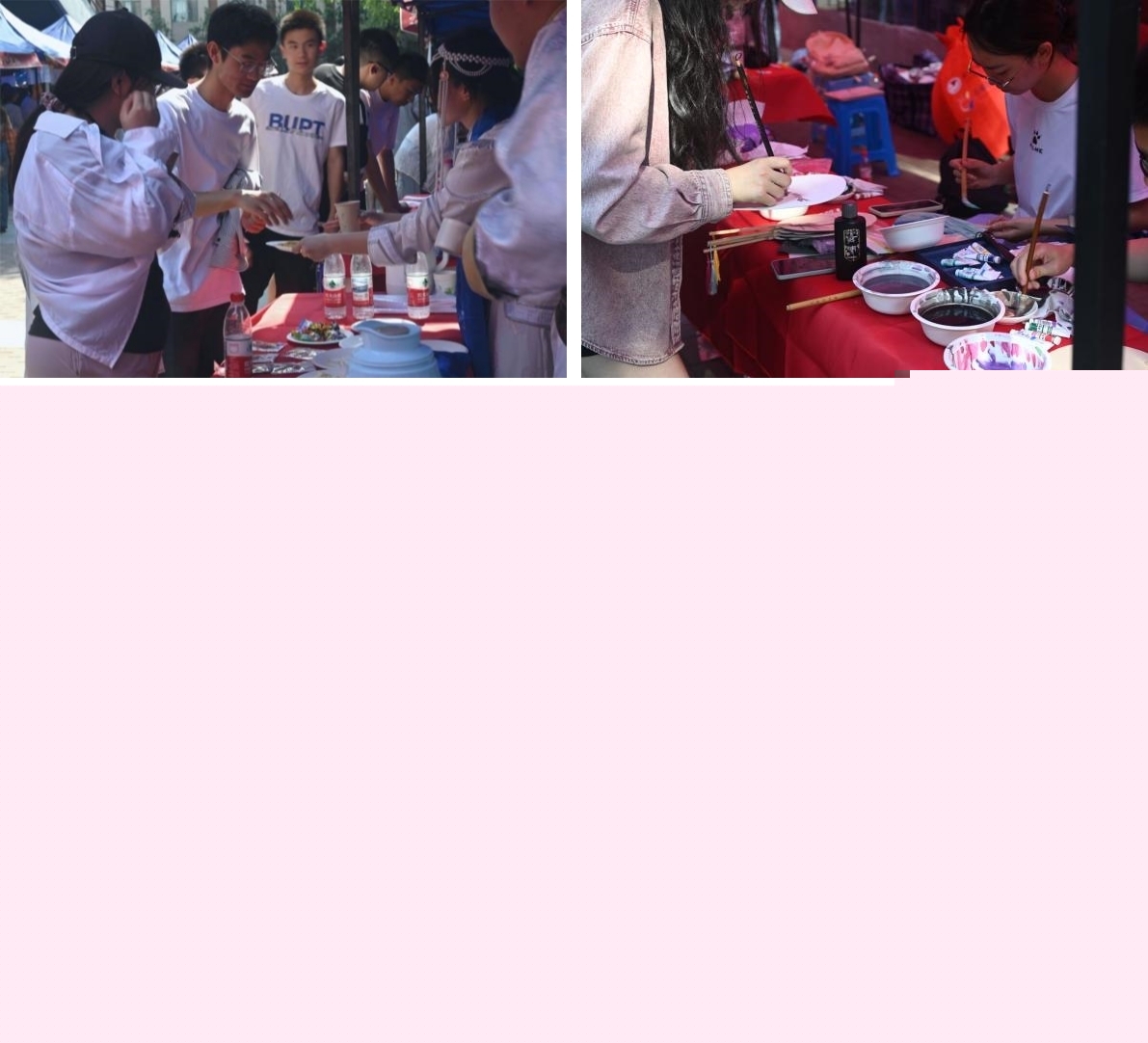 中華民族共同體文化展示體驗長廊活動別具特色。我校各民族的同學精心布置展臺,推出書法創作、傳統手工藝制作、民族服飾體驗、特色美食品鑒等互動項目?;顒蝇F場氣氛熱烈,參與者通過書法創作感受中華文字之美,巧手制作寄托美好祝愿,試穿民族特色服飾領略多彩文化,品嘗風味美食感受中華飲食文化的獨特魅力。