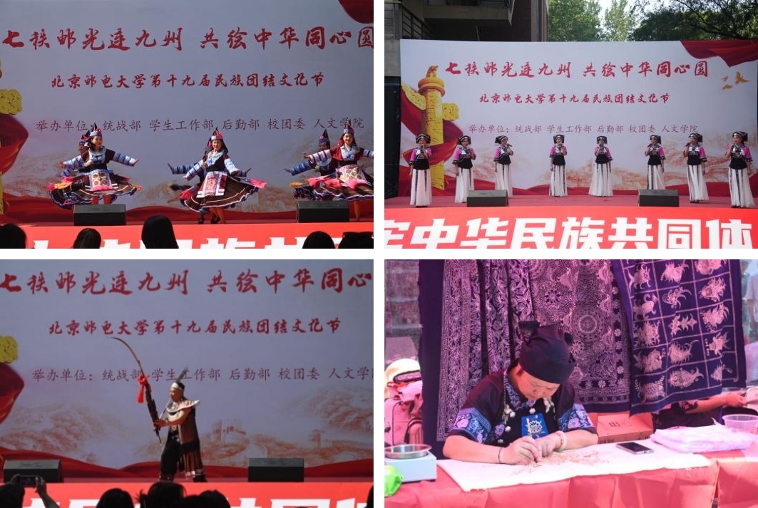 我校定點幫扶的貴州省長順縣文藝代表團帶來了精彩的歌舞節目以及特色工藝品制作展示。一曲《長順山歌謝北郵》展現了北郵長順心連心、攜手并肩共奮進的美好圖景。